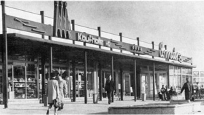 Bild: HO-Kaufhalle im Neubaugebiet Stralsund-Knieper West, um 1970