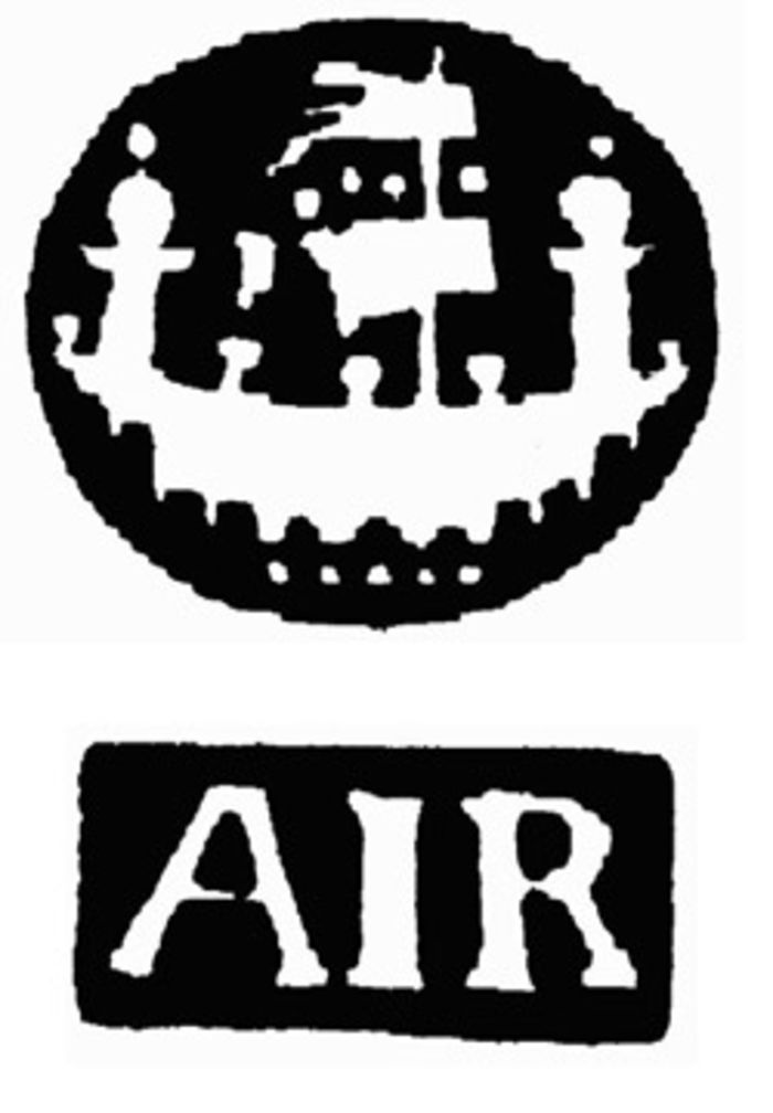 Das städtische Barther Beschauzeichen (oben) und die Signatur des Barther Meisters A.I.R. (unten)