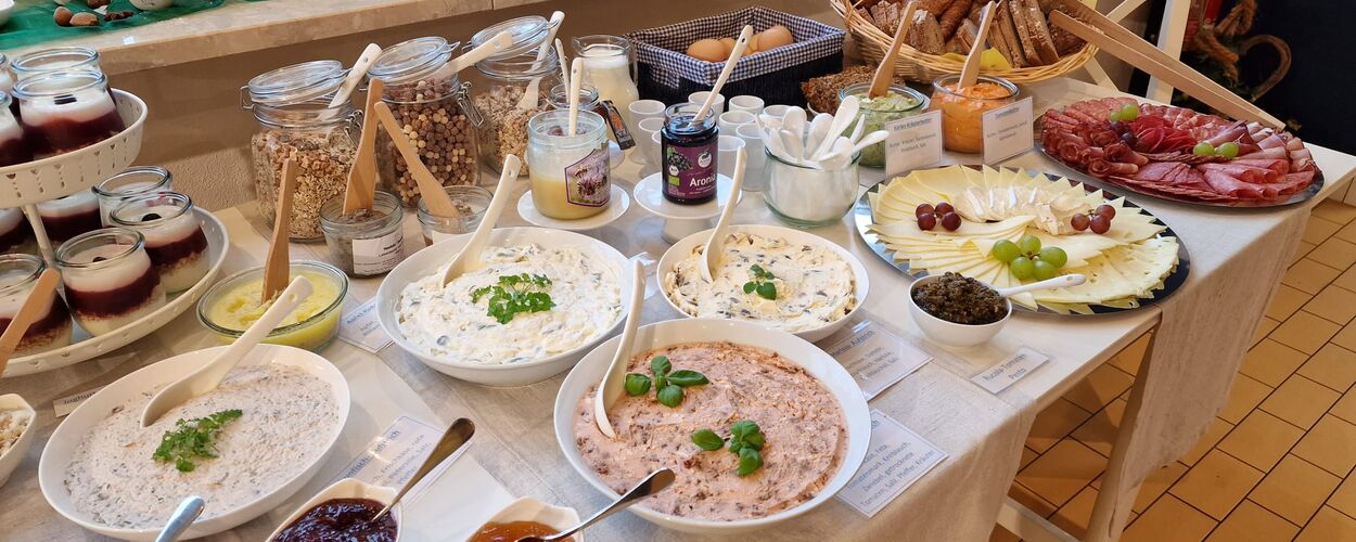 Es erwartet Sie ein reichhaltiges Frühstücksangebot mit vielen Bio-Produkten