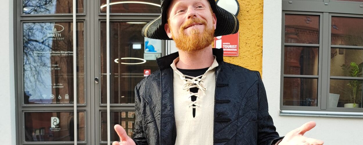 Der Nachtwächter, gekleidet in dunkler Gewandung und mit Laterne in der Hand, erweckt mit seinem historischen Wissen und witzigen Anekdoten die Vergangenheit der mittelalterlichen Barther Altstadt zum Leben und lässt euch die Atmosphäre der damaligen Zeit spüren. Lauscht und lüftet gemeinsam mit ihm die Geheimnisse der verwinkelten Gassen der Stadt.