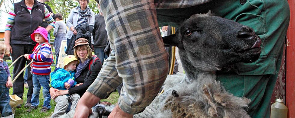 Scheren der Museumsschafe. Anmeldungen zum Scheren von Schafen im Vorfeld im Freilichtmuseum Klockenhagen möglich!