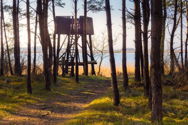 Ein goldener Sonnenuntergang tauchte den Barther Fuchsberg in warmes Licht. Hier, wo sich Natur und Stille vereinten, fand ein ganz besonderes Treffen statt – ein Gespräch zwischen mir und Friedemann Bartz, dem erfahrenen Naturführer und ehemaligen Nationalparkranger. Wir schlenderten gemütlich durch das Wandergebiet, umgeben von herbstlicher Pracht und einer sanften Brise, die die Vorfreude auf das bevorstehende Naturereignis spürbar machte.