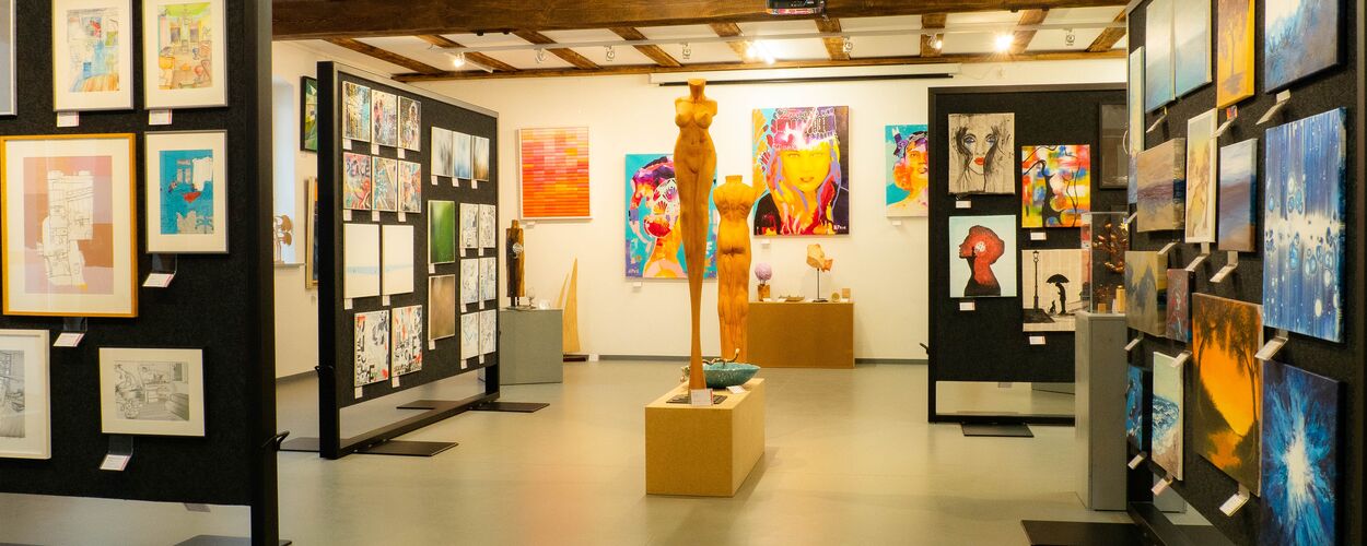 Unser Ziel ist, sowohl Hobbykünstlern als auch Profis eine Plattform zur Präsentation und zum Verkauf eigener Werke zu bieten. Zu diesem Zweck sanierten wir 2019 das ehemalige Tischlereigebäude und schufen damit über 300qm Ausstellungsfläche für all Jene, die zeigen wollen, was sie können!