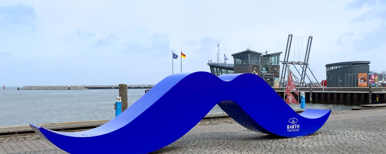 Auf dem Hafenvorplatz begrüßt der große Barther Bart die ankommenden Schiffe und natürlich auch die Gäste des an Land. Ein toller Fotospot.