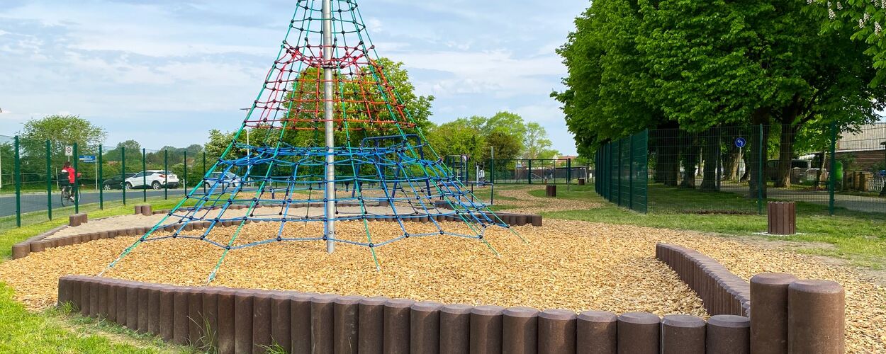 Der Spielplatz ist am Bleicherwall gelegen und bietet neben einem großen Kletternetz, ein Karussell, Schaukeln sowie Fitnessgeräte.