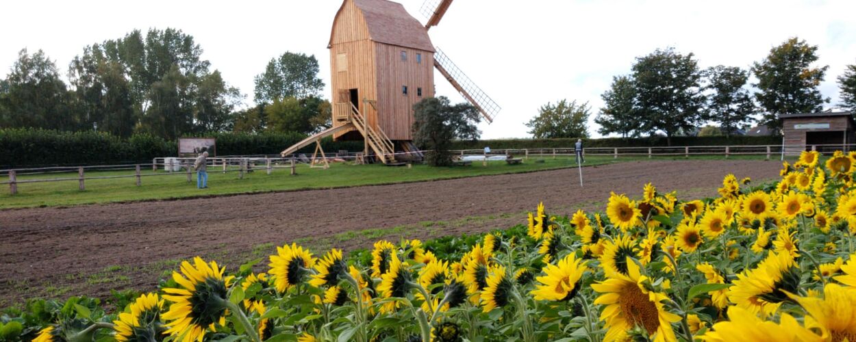 Die Bockwindmühle ist die letzte in der Region. Sie stammt aus dem Jahr 1795 und stand ursprünglich in Groß Ernsthof bei Wolgast. 2020 wurde die Mühle saniert und die gesamte Mechanik wiederhergestellt. Wenn der Wind kräftig weht, dreht sie sich und ist in der Lage Korn zu mahlen. So kann im Museum der gesamte Kreislauf vom Getreideanbau bis zum gebackenen Brot nachverfolgt und miterlebt werden.