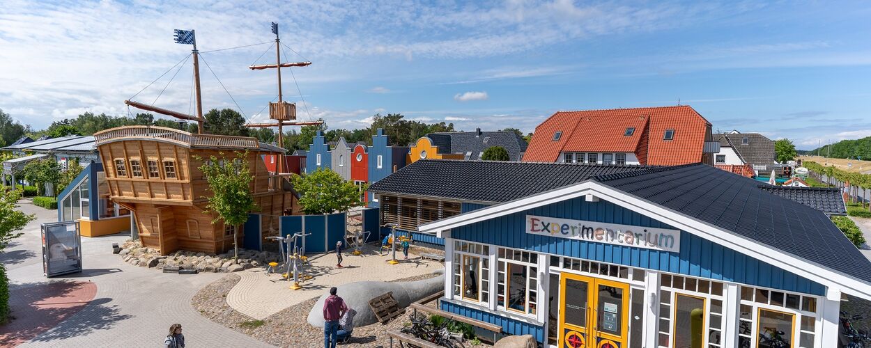 Spiel und Spaß an der frischen Luft - Mitten in Zingst ist ein Schiff gestrandet! Kleine Piraten und Entdecker können das Schiff entern, auf große Fahrt gehen und sogar vom Deck ins Sand-Meer rutschen. Außerhalb des Experimentariums gibt es auch noch mehr Platz zum Toben und Entdecken. Rund um den kleinen Leuchtturm, den die meisten nur unter dem Namen Alter Lutz kennen, findet sich ein Wasserspielplatz. Gleich daneben kann man sich an den unterschiedlichsten Sportgeräten ausprobieren.